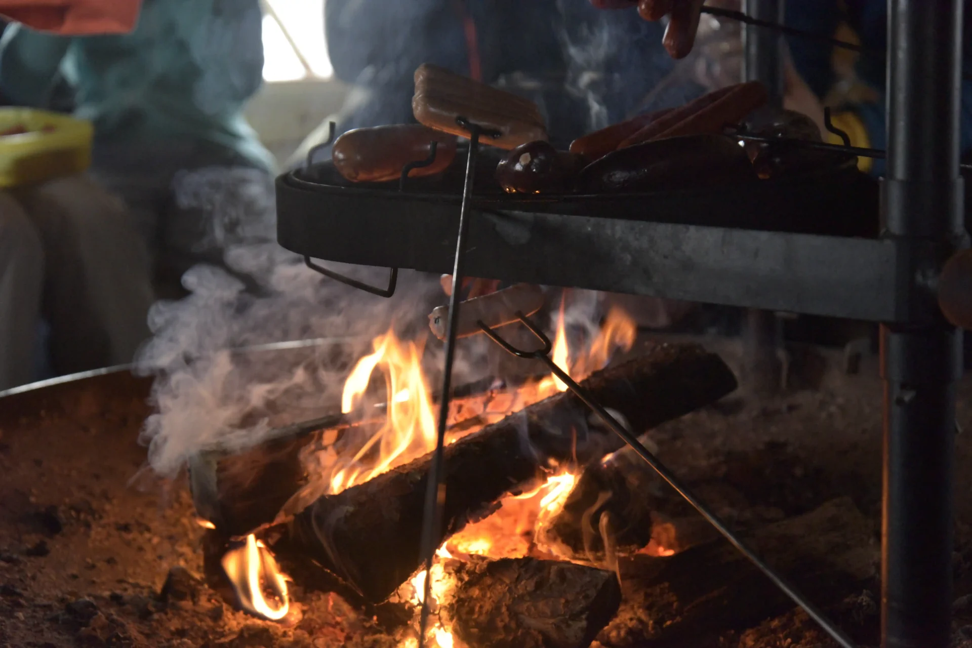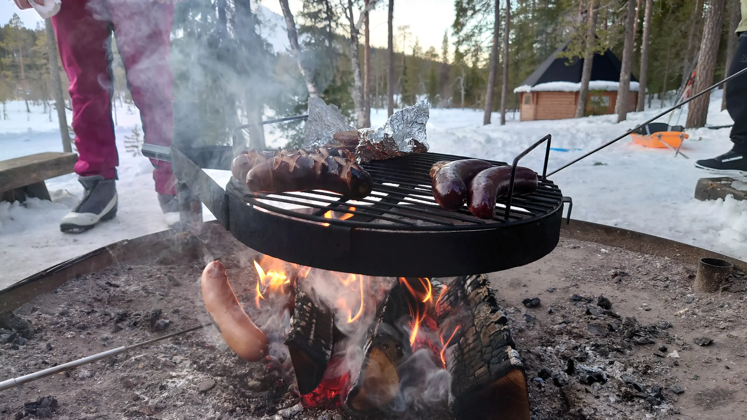 Stovyklavietėje prie laužo kepsime dešreles ar sūrį, mėgausimės sumuštiniais ir karšta arbata. Norintys galės pasirinkti pietus kavinėje Kesänkijärvi (už 17 km), kur taip pat yra laužavietė.