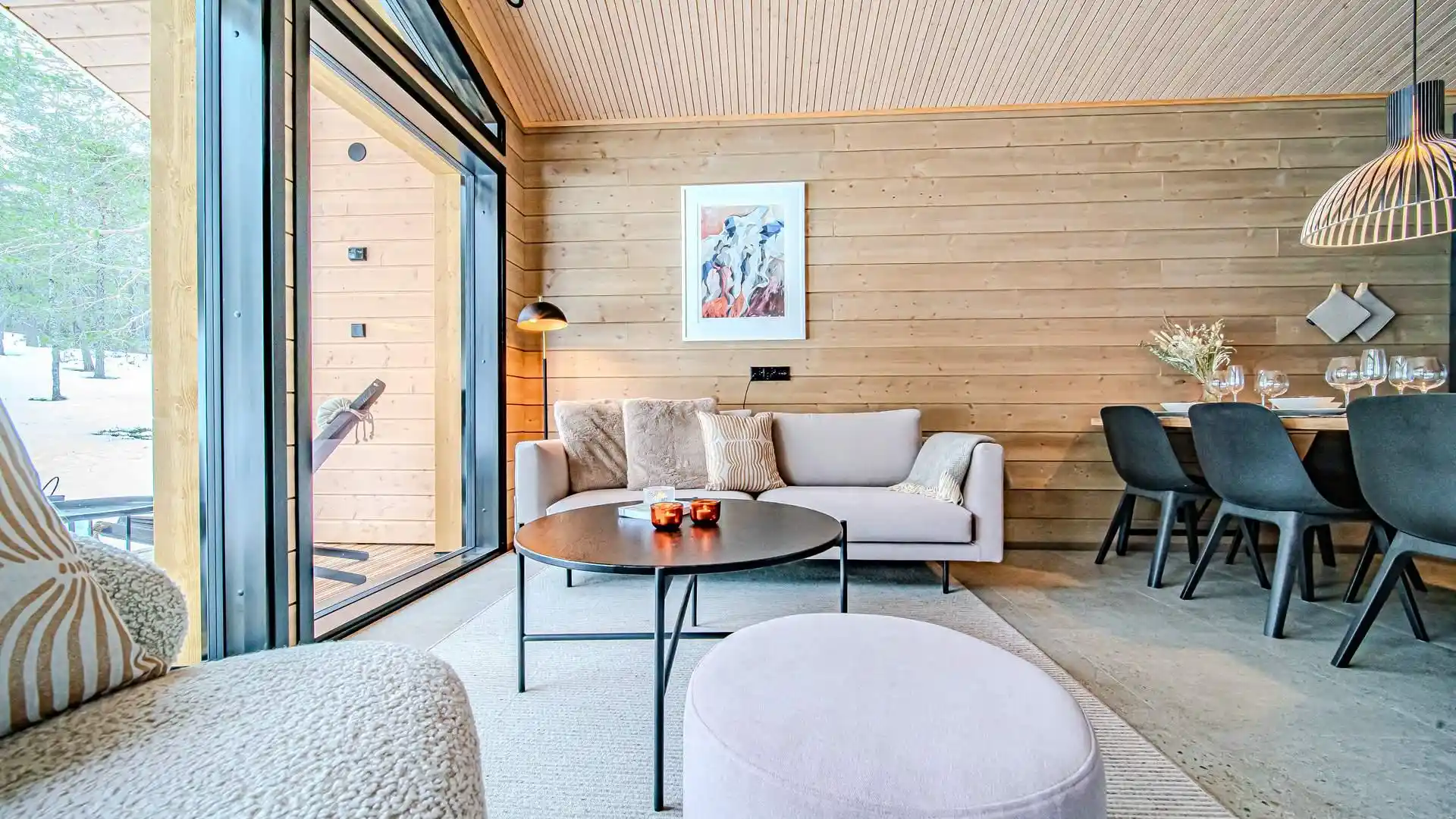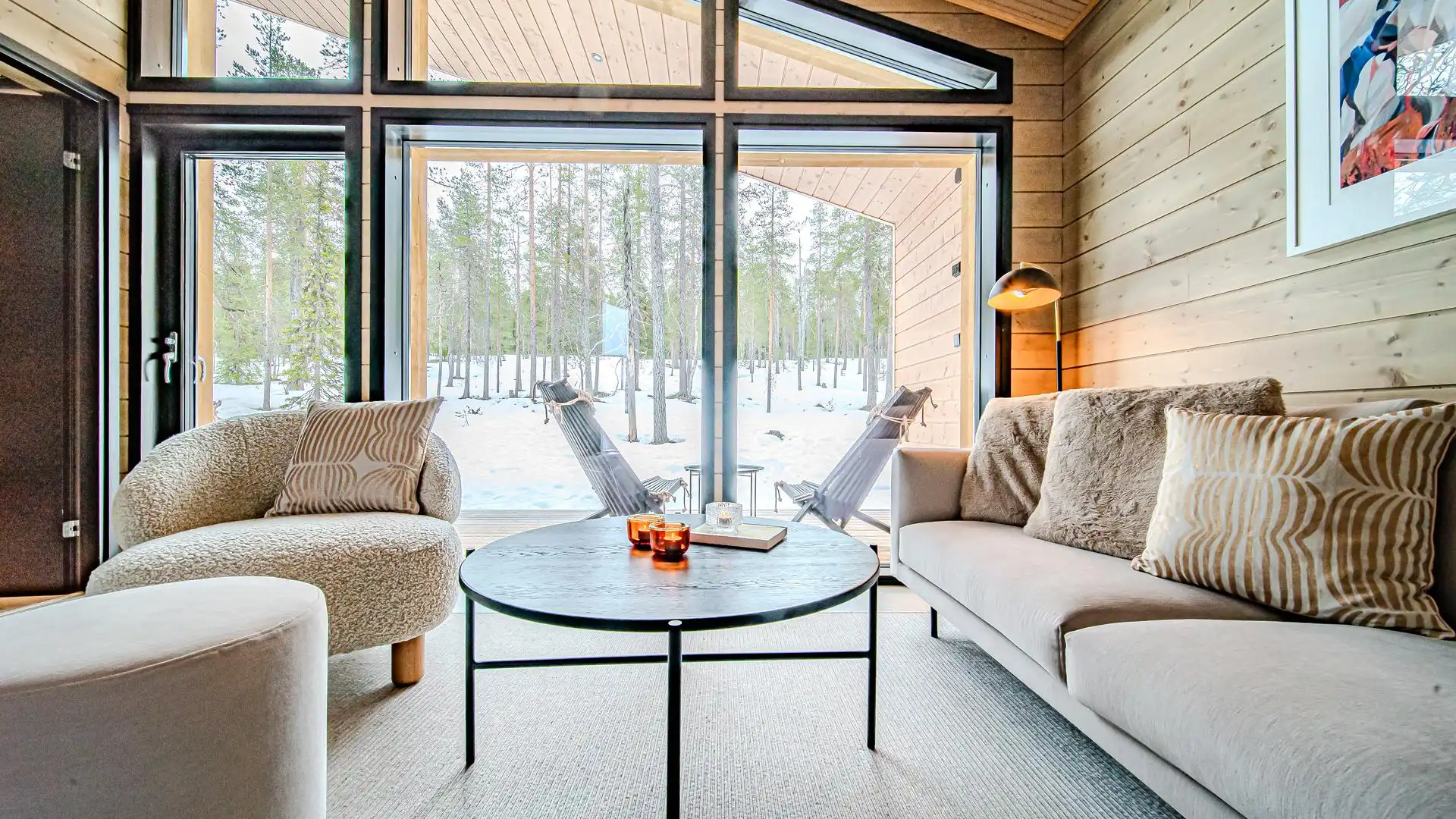 Kelionės metu gyvensime jaukiose, moderniose suomiškose vilose, įsikūrusiose gamtos apsuptyje. Gyvensime 3 vilose po 6 asmenis. Vienoje viloje yra 3 miegamieji kambariai. Vilos nėra identiškos, todėl apgyvendinamas truputį gali skirtis.