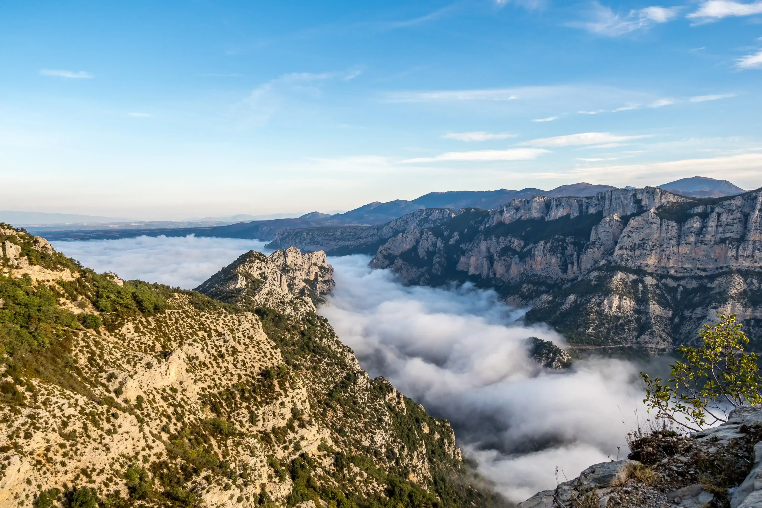 Leidžiamės į vieną garsiausių ir įspūdingiausių maršrutų visame Verdon tarpeklio regione – Sentier Blanc-Martel. Šis takas veda giliai į tarpeklio širdį, sekdamas Verdon upės vingius, tarp stačių skardžių ir galingų uolų sienų, kurių viršūnių kartais net nematyti nuo apačios. Kelias vingiuoja pro gamtos sukurtas skulptūras – nuo masyvių uolų iki siaurų atbrailų, kur žingsnis reikalauja dėmesio, o vaizdas – susižavėjimo pauzės. Įveikiame ilgas laiptų atkarpas, pereiname tamsius tunelius – vienas jų net 700 metrų ilgio. Kartais takas siaurėja tiek, kad tenka priglusti prie uolos sienos, kartais atveria platų tarpeklio dugną, kur galima atsikvėpti stebint turkio spalvos upės tėkmę. Tai maršrutas, kuriame keičiasi viskas – aukščiai, paviršiai, nuotaikos ir šviesa. Dieną baigiame Rougon miestelyje – mažame, bet be galo žavingame Provanso kaime, įsitaisiusiame aukštai virš tarpeklio.