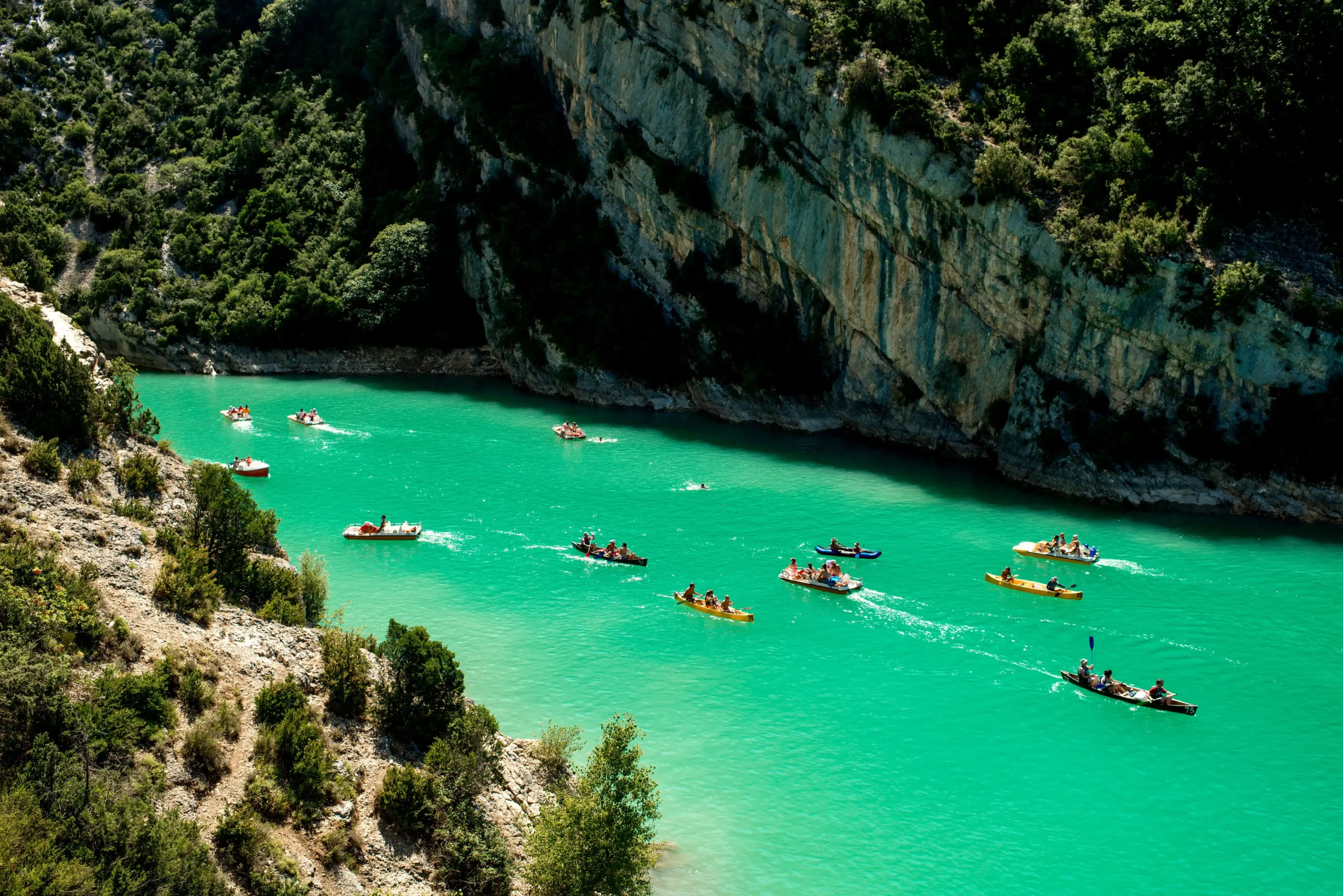 Pažinus tarpeklį kylant ir leidžiantis jo šlaitais atėjo metas pažvelgti į jį iš visai kitos perspektyvos – nuo vandens. Ryte leidžiamės link Sainte-Croix – plataus, žydro ežero, į kurį įteka ta pati Verdono upė. Plaukiame baidarėmis arba vandens dviračiais žydrais Verdon vandenimis tarp tiesiai iš vandens kylančių uolų ir stačiai krentančių krioklių. Po pasiplaukiojimo laukia piknikas paplūdimyje – vieta, kur galima tiek ilsėtis, tiek atsigaivinti žydrame ežero vandenyje. Norintys ne ramaus pasiplaukiojimo, o daugiau adrenalino gali išbandyti raftingą. Tai paskutinis šio žygio akcentas prieš atsisveikinant su kalnais.